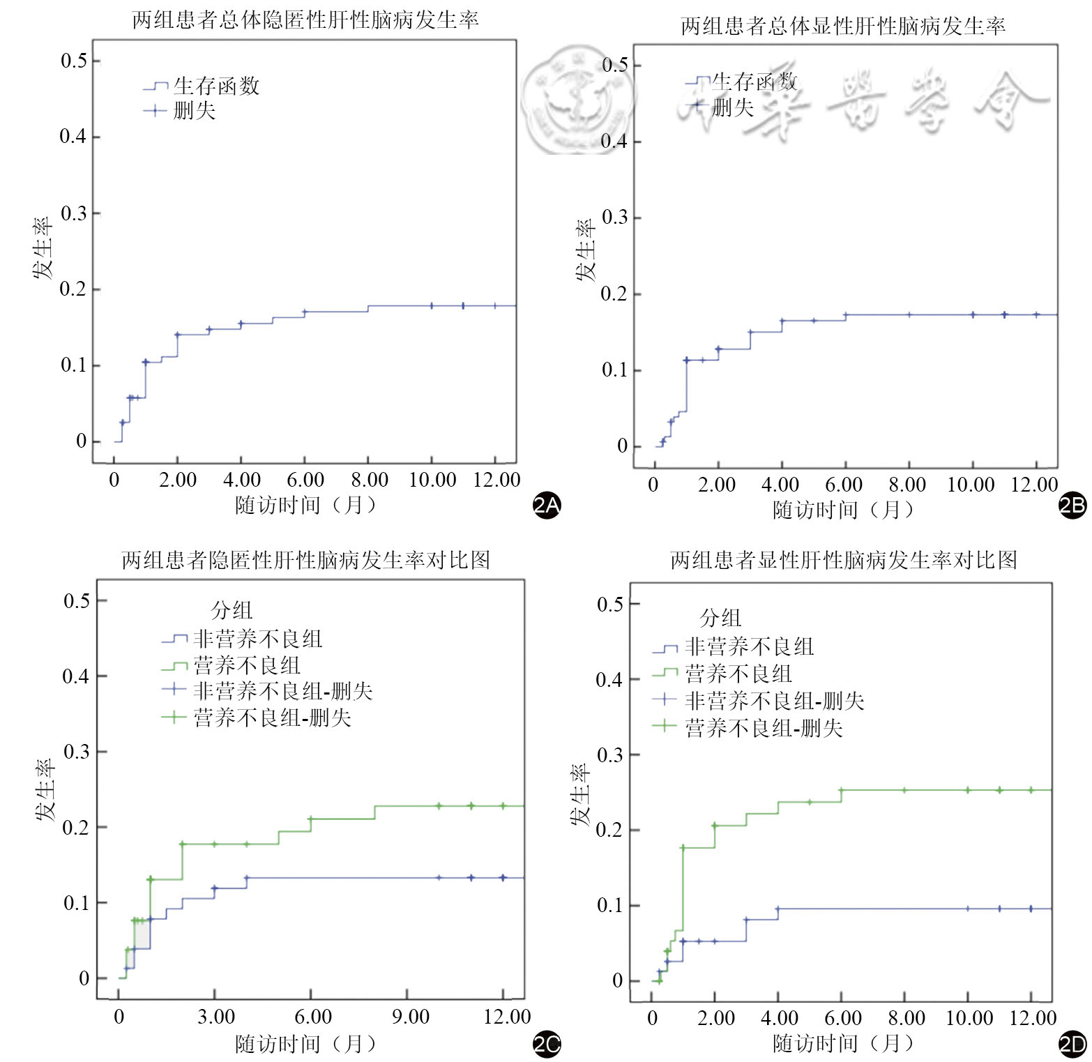 Within one year after TIPS, the M group showed a significantly higher incidence of overall HE (43.00% vs. 21.80%, χ2= 8.864, P=0.003) and overt HE (25.30% vs. 9.60%, χ2= 6.305, P=0.012) compared to the nM group. No significant difference was found in the incidence of covert HE (22.80% vs. 13.30%, P=0.098). At the end of follow-up, the survival rate in the M group was significantly lower than in the nM group (77.60% vs. 80.80%, χ2= 4.706, P=0.030).